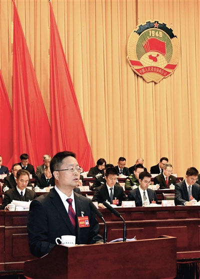 郑小波代表政协第十一届垫江县委员会常务委员会,向大会作工作报告。