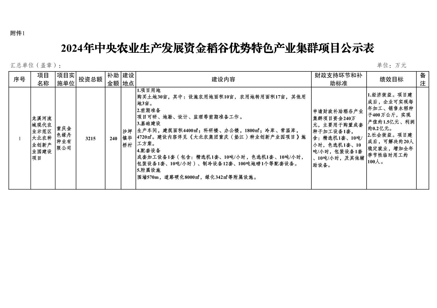 附件:垫江县农业农村委员会中央农业生产发展资金稻谷优势特色产业集群项目公示表