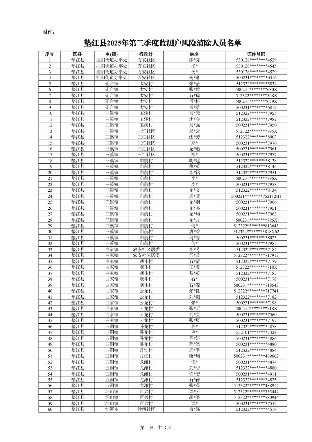 附件:垫江县2025年第三季度监测户风险消除人员名单