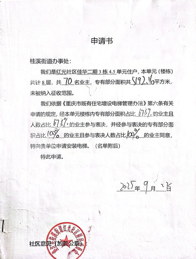 若你单元或个人有意见和建议,请注明身份(个人姓名及身份证复印件)、联系电话和邮寄地址,在2025年12月22日18:00前将书面意见等证明涉及其利害关系的材料邮寄或直接提交至垫江县人民政府桂溪街道办事处。逾期未提出的,视为同意增设电梯事宜或自动放弃权利。