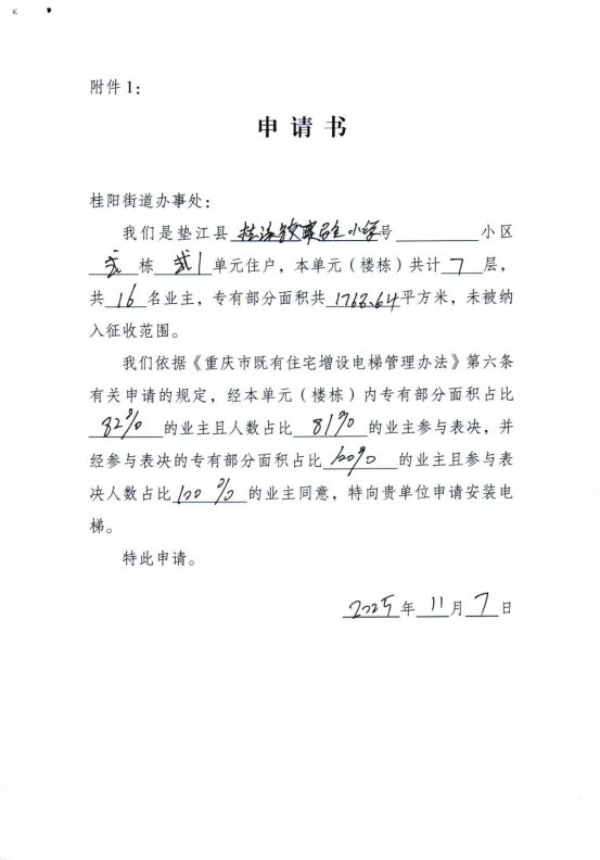 若你单元个人有意见和建议,请注明身份(个人姓名及身份证复印件)、联系电话和邮寄地址,在2026年1月23日前将书面意见等证明涉及其利害关系的材料邮寄或直接提交至垫江县人民政府桂阳街道办事处。逾期未提出的,视为同意增设电梯事宜或自动放弃权利。