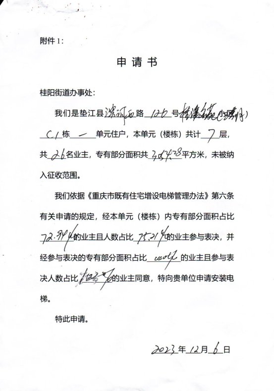 桂阳街道桂溪名苑牡丹丽庭(三期)C1栋1单元位于桂溪名苑小区内,根据《重庆市既有住宅增设电梯管理办法》,该单元业主向桂阳街道申请对现有住宅增设电梯,通过对申请资料的审核及既有住宅增设电梯联合审查小组现场踏勘,拟具备增设电梯的条件。现将书面申请书、授权委托书、施工图(总平面图、平面图、立面图、剖面图)、房屋结构安全论证、消防技术标准说明、业主书面同意书、增设电梯费用分担协议,进行现场公示、公开征求利害关系人意见。