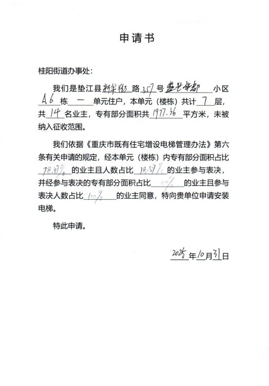 若你单元个人有意见和建议,请注明身份(个人姓名及身份证复印件)、联系电话和邮寄地址,在2026年2月6日前将书面意见等证明涉及其利害关系的材料邮寄或直接提交至垫江县人民政府桂阳街道办事处。逾期未提出的,视为同意增设电梯事宜或自动放弃权利。