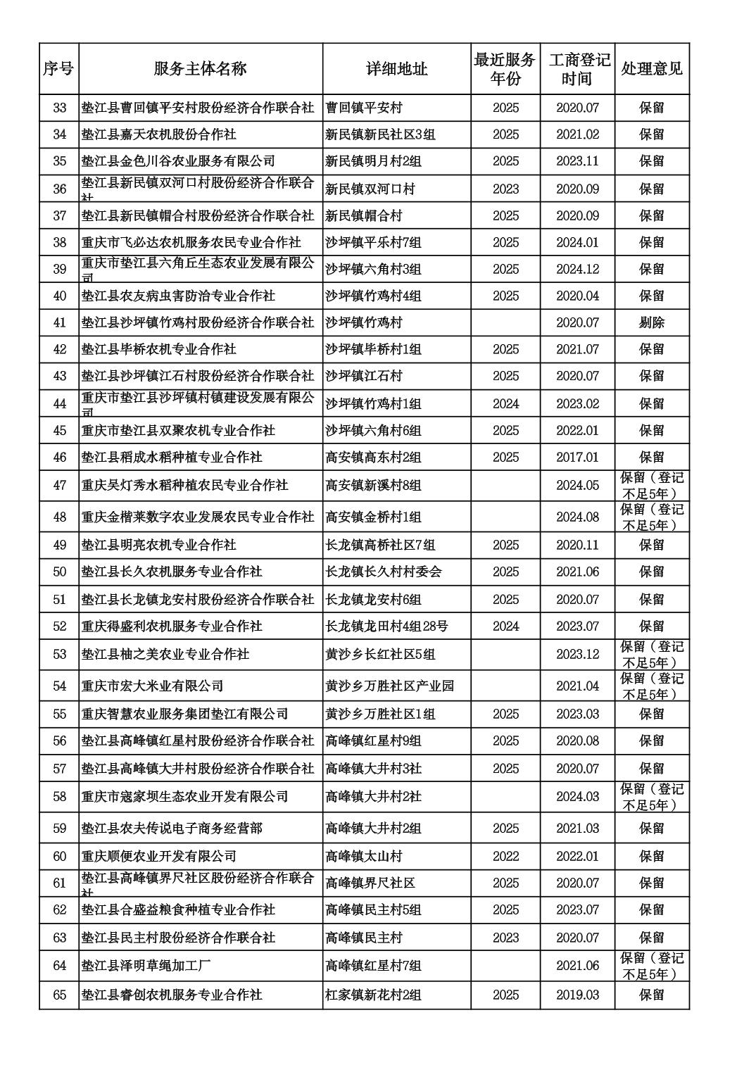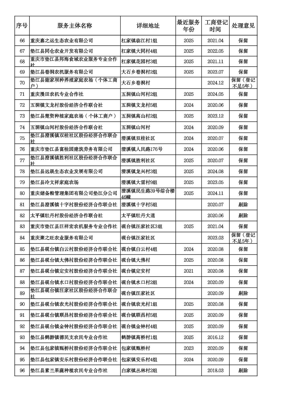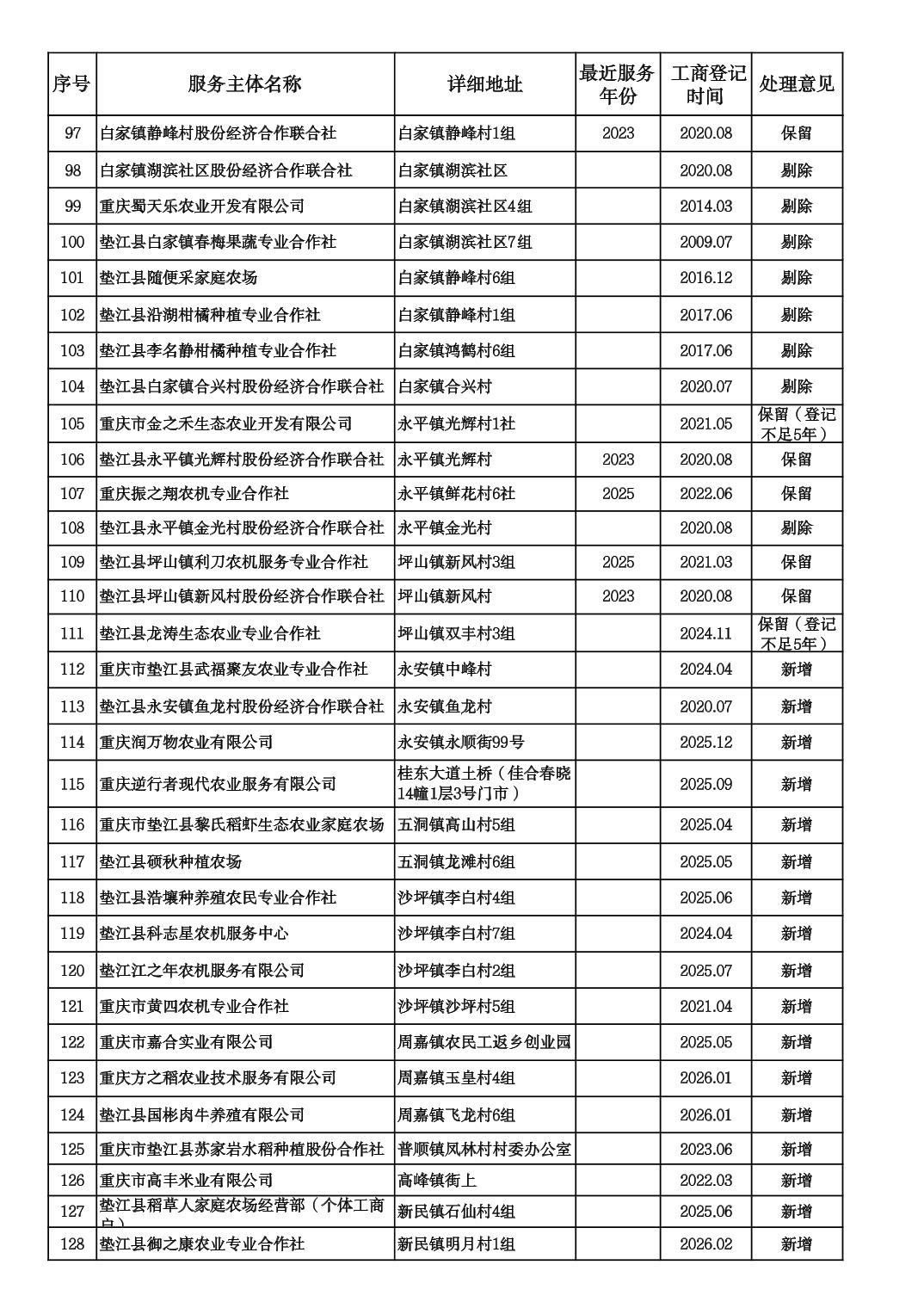 附件:垫江县农业社会化服务主体名录库更新公示表