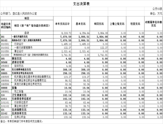 垫江县人民政府办公室2022年部门决算包括:垫江县人民政府办公室(本级)、垫江县人民政府电子政务中心、垫江县机关后勤服务中心、垫江县自然灾害预警预防信息中心、垫江县公共资源交易中心、垫江县群众工作服务中心。根据上述职责:
