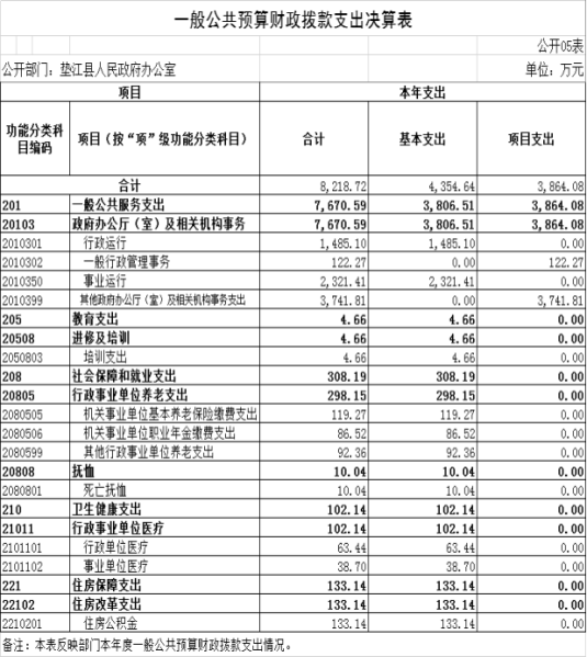 (1)一般公共服务支出7,670.59万元,占93.3%,较年初预算数增加4,121.7万元,增长116.1%,主要原因是一是财政用存量资金追加机关后勤服务中心县级党政机关办公用房经费,二是新增上报决算单位垫江县群众工作服务中心。
