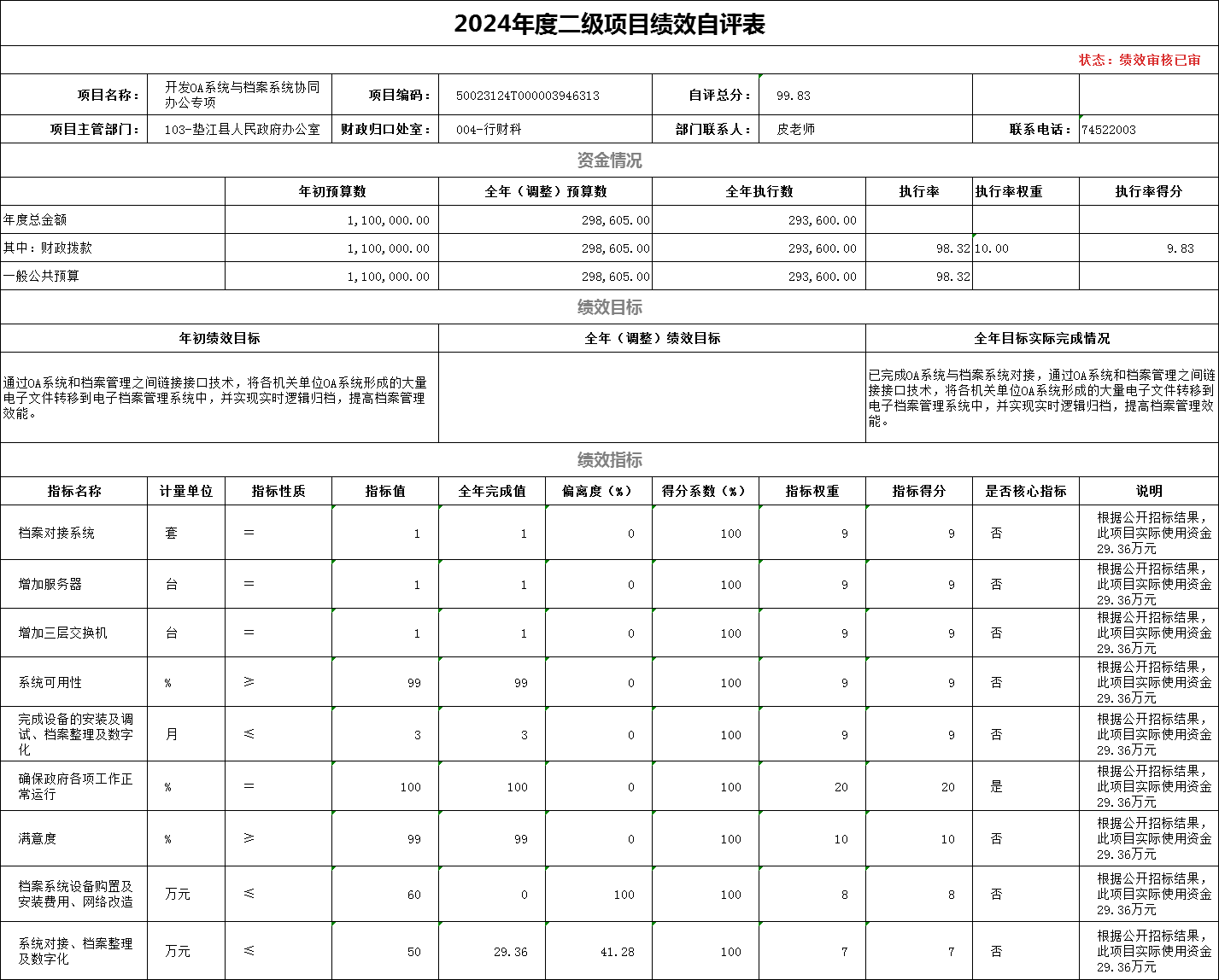 (二)单位绩效评价情况
