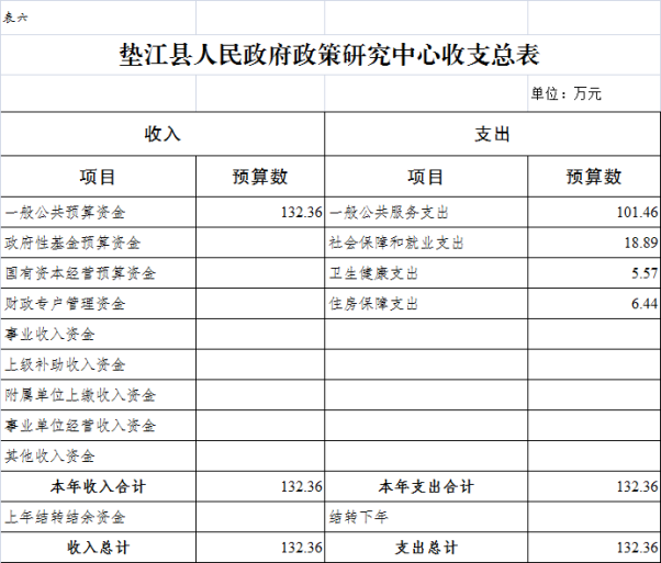 6.垫江县人民政府政策研究中心收支总表