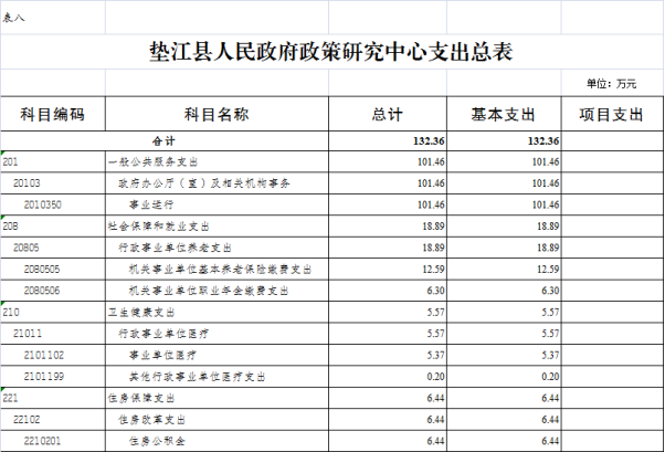 8.垫江县人民政府政策研究中心支出总表
