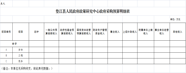 9.垫江县人民政府政策研究中心政府采购明细表