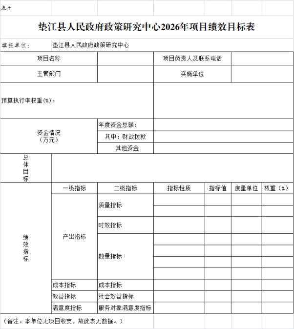 10.垫江县人民政府政策研究中心2026年项目绩效目标表