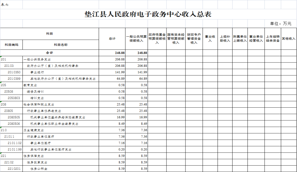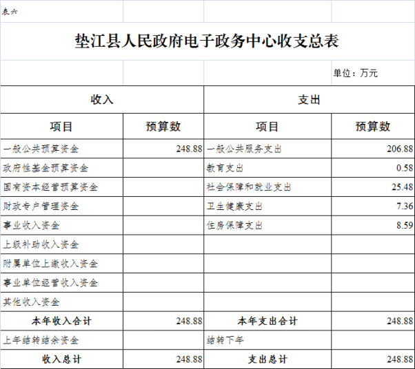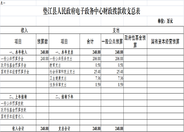 附表:1.垫江县人民政府电子政务中心财政拨款收支总表