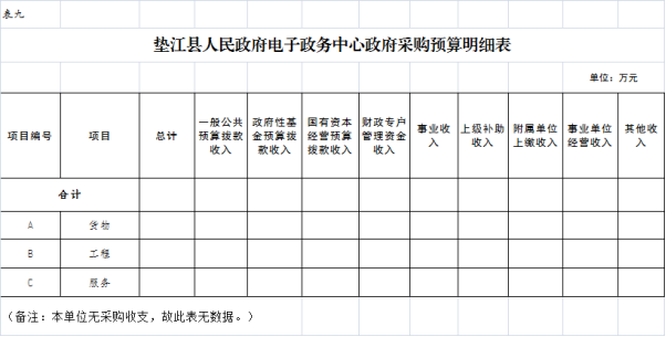 (二)政府采购情况。所属各预算单位政府采购预算总额0万元:政府采购货物预算0万元、政府采购工程预算0万元、政府采购服务预算0万元;其中一般公共预算拨款政府采购0万元:政府采购货物预算0万元、政府采购工程预算0万元、政府采购服务预算0万元。