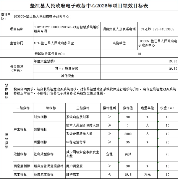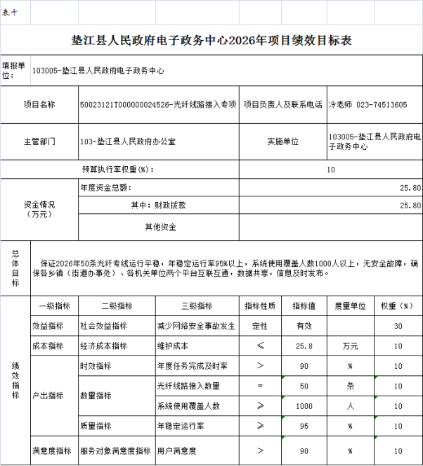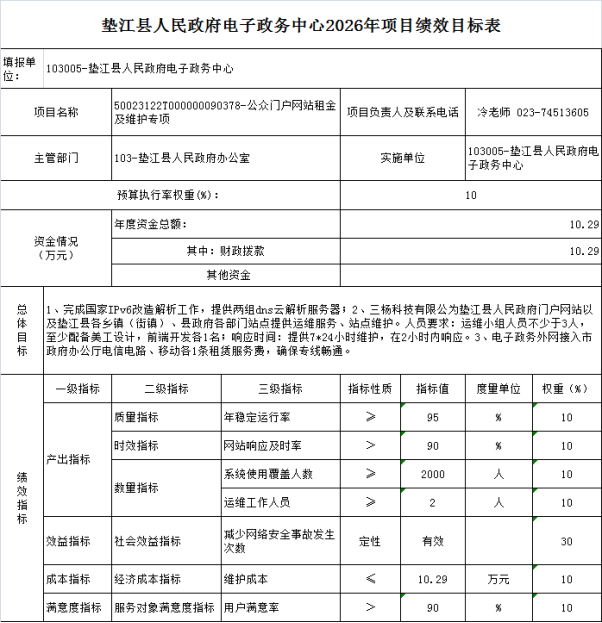 10.垫江县人民政府电子政务中心2026年项目绩效目标表