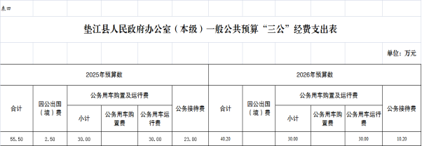 4. 垫江县人民政府办公室(本级)一般公共预算“三公”经费支出表