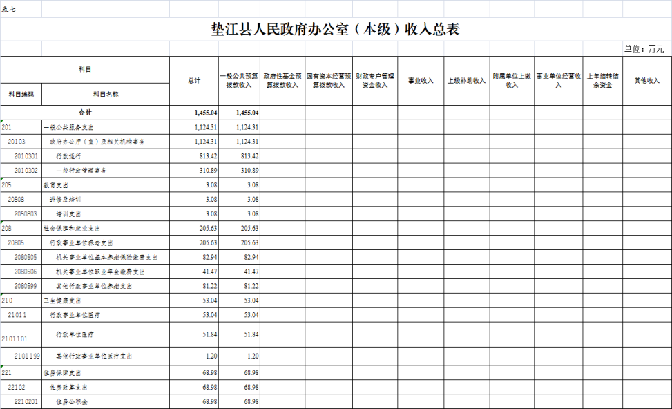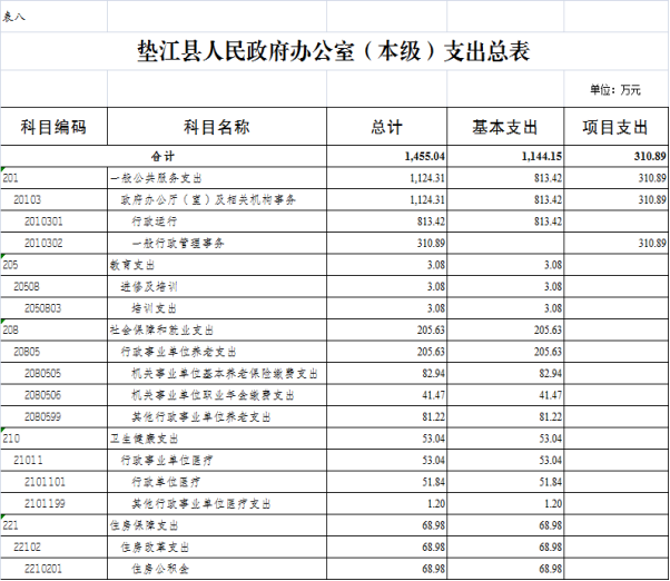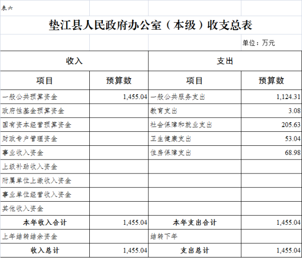 附表:1.垫江县人民政府办公室(本级)财政拨款收支总表