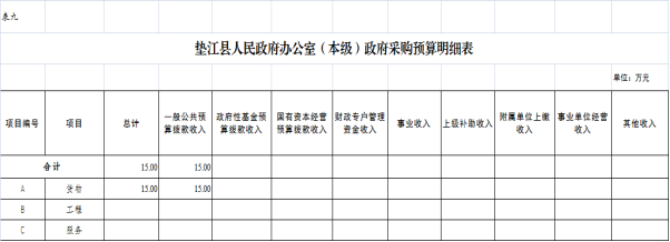 9. 垫江县人民政府办公室(本级)政府采购明细表