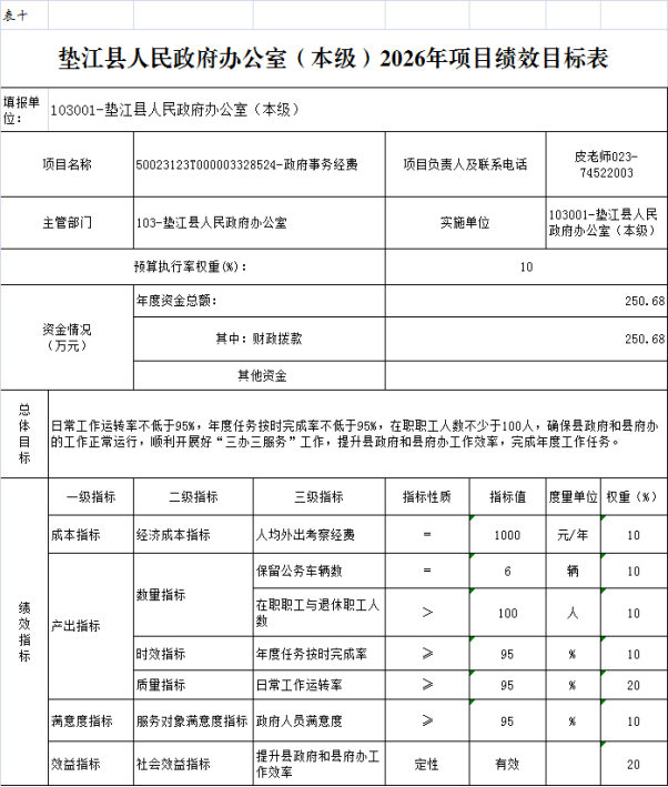 10. 垫江县人民政府办公室(本级)2026年项目绩效目标表