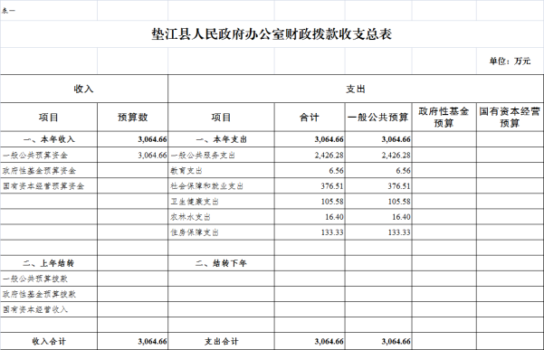 附表:1.垫江县人民政府办公室财政拨款收支总表