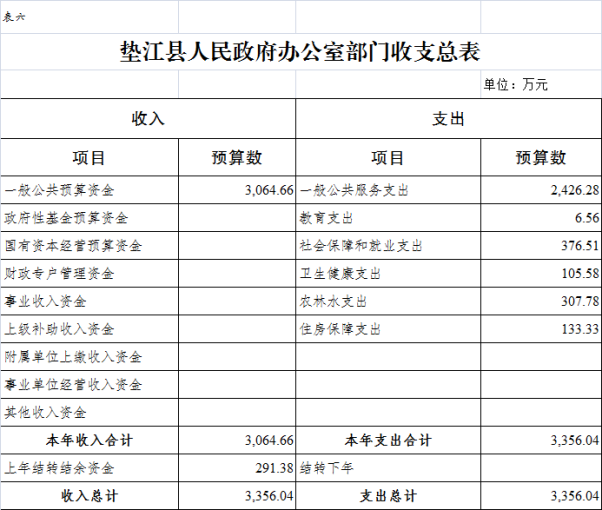 6. 垫江县人民政府办公室部门收支总表