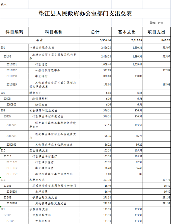 8. 垫江县人民政府办公室部门支出总表