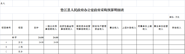 9. 垫江县人民政府办公室政府采购明细表