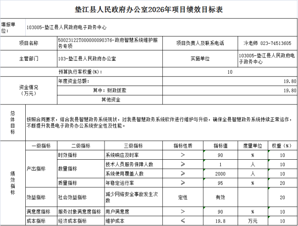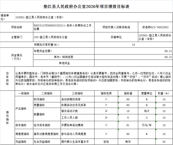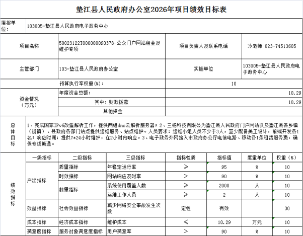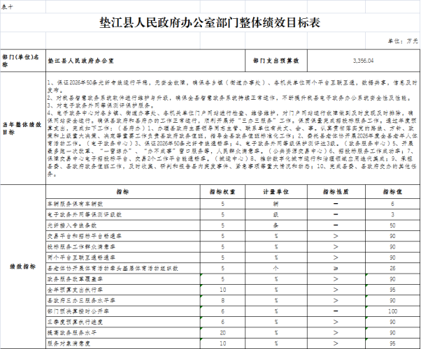 10. 垫江县人民政府办公室20265年部门和单位整体绩效目标表