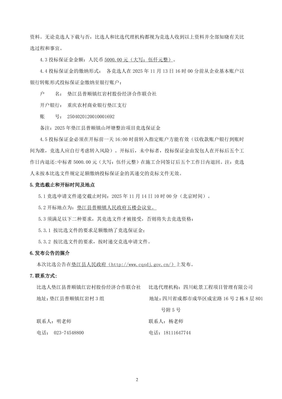 2025年垫江县普顺镇山坪塘整治项目竞争性比选文件